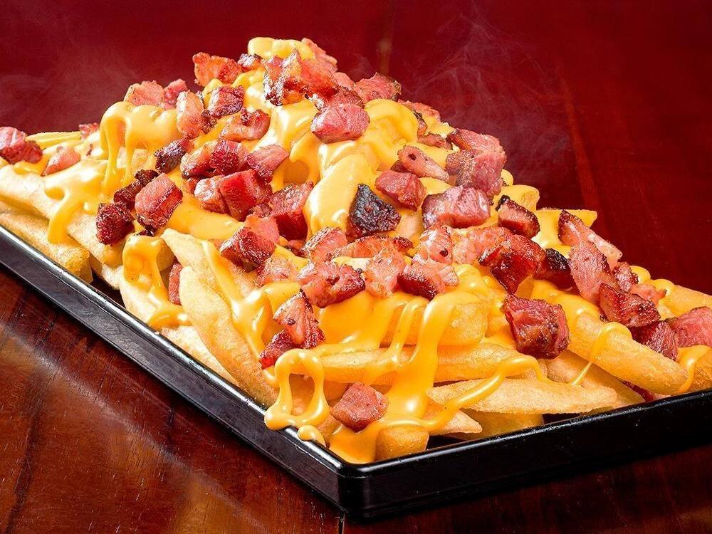 Uma explosão de sabores e texturas em um único prato: as batatas douradas e crocantes, cobertas com um irresistível e cremoso cheddar derretido, e coroado com pedaços crocantes de bacon defumado. Uma sinfonia de indulgência que vai conquistar seu paladar em cada mordidaBatata frita (360g) com cheddar(120g) e bacon (60g)
