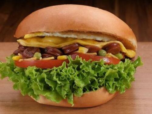 Pão, carne, ovo, milho, calabresa, batata palha, alface e tomate